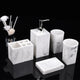 - Materials: The Marble Bliss 7-Piece Bathroom Set is made from high-quality ceramic that imitates marble.